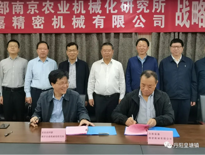 農(nóng)業(yè)農(nóng)村部南京農(nóng)業(yè)機(jī)械化研究所黨委書記胡志超、江蘇省農(nóng)業(yè)機(jī)械試驗鑒定站站長馬立新、丹陽市副市長黃俊杰、市農(nóng)業(yè)農(nóng)村局局長荊健康、皇塘鎮(zhèn)黨委書記陸云飛、黨委副書記聶冰、榮嘉精密機(jī)械有限公司董事長殷來大等出席簽約儀式。